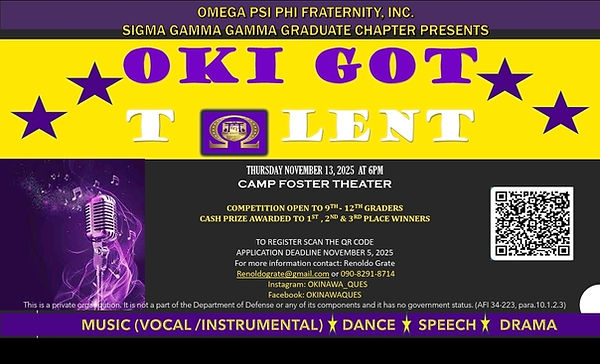 Oki Got Talent is an annual talent show exclusively for 9th-12th grade students in the Okinawa area. It provides a platform for high schoolers to showcase their diverse talents to the community. Participants compete for the chance to win cash prizes awarded to top performers.